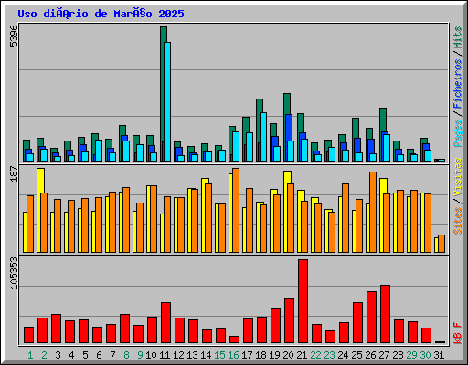 | Dia | Hits | Ficheiros | Pages | Visitas | Sites | kB F | ||||||
